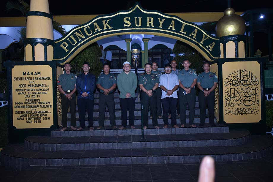 Tadi malam sekitar pukul 20.00 WIB Pondok Pesantren Suryalaya kedatangan tamu untuk bersilaturahmi dari Komandan Korem (Danrem) 062/Tarumanegara Kolonel Inf Dadi Sutandi, S.E., M.M. dan Ketua Persit KCK Koorcab Rem 062 Ny. Imas Dadi Sutandi dan beberapa Jajaran dari Korem 062/Tarumanegara dan Kodim 0612/Tasikmalaya.
